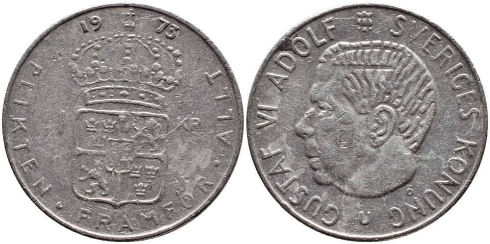 Швеция 1 крона 1973 Густав VI Адольф (1950-1973) KM 826а медь плакированная медно-никелем 4395-245