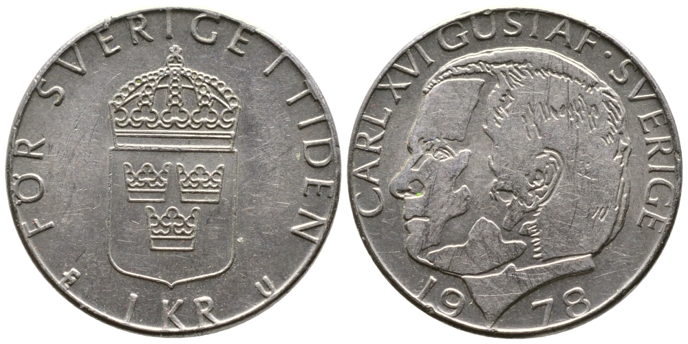 Швеция 1 крона 1978 Карл XVI Густав (1973- ) KM 852 медь плакированная медно-никелем 177-937