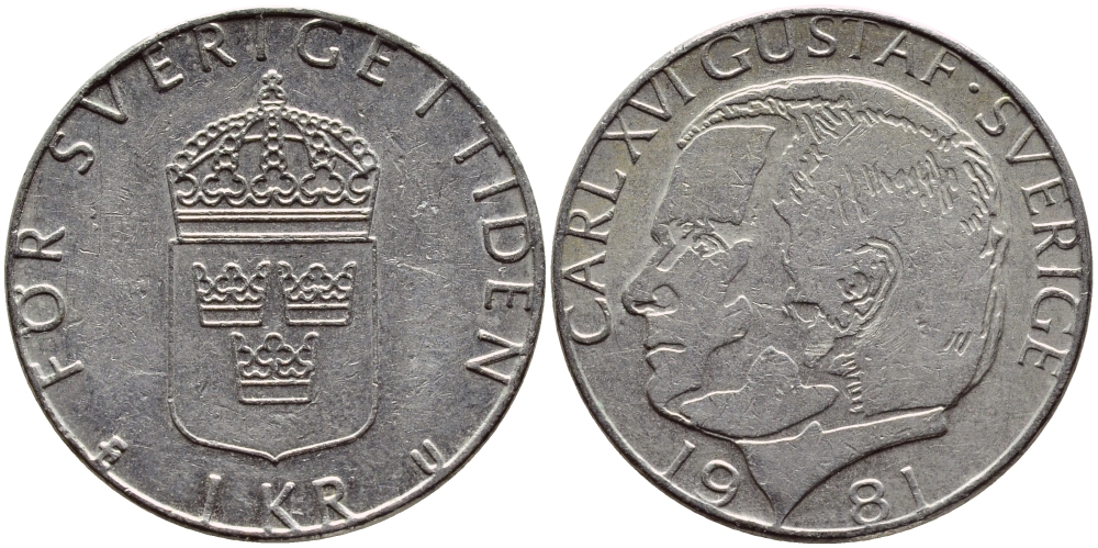 Швеция 1 крона 1981 Карл XVI Густав (1973- ) KM 852 медь плакированная медно-никелем 4397-1017