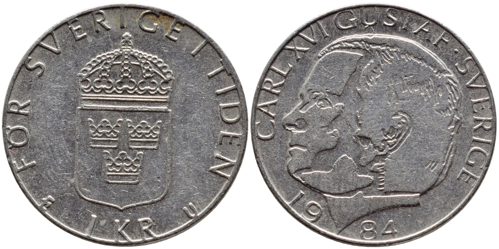 Швеция 1 крона 1984 Карл XVI Густав (1973- ) KM 852a медно-никель 4397-1142