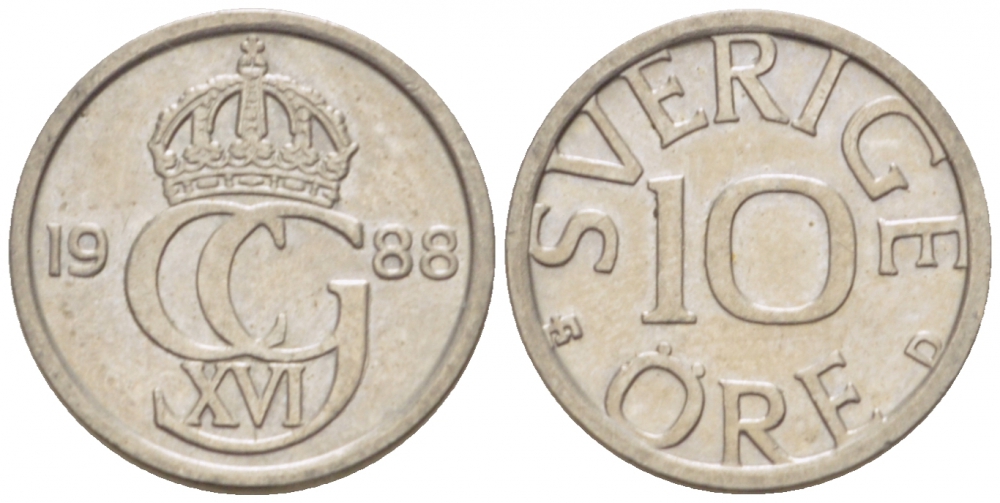 Швеция 10 эре 1988 U Карл XVI Густав (1973- ) KM 850 медно-никель 3955-357