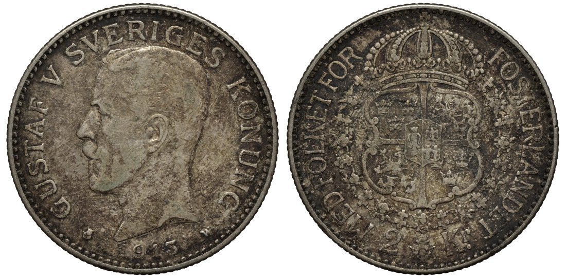 Швеция 2 кроны 1913 W, Густав V (1907-1950) KM 787 серебро 413-6313