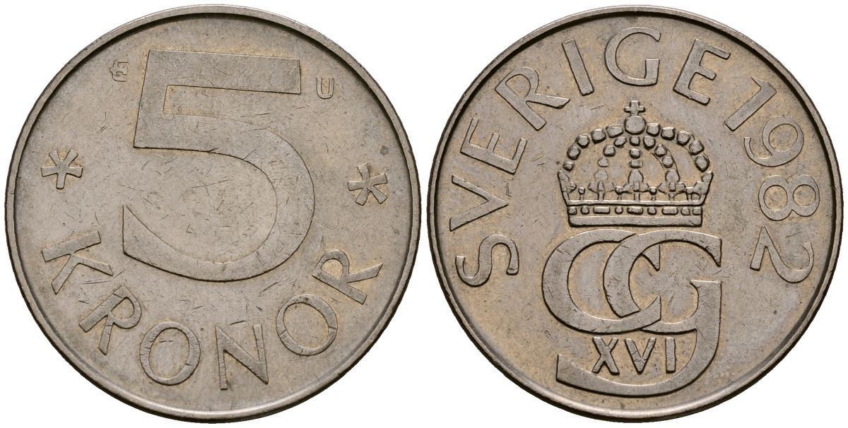 Швеция 5 крон 1982 Карл XVI Густав (1973- ) KM 853 медно-никель 4165-936