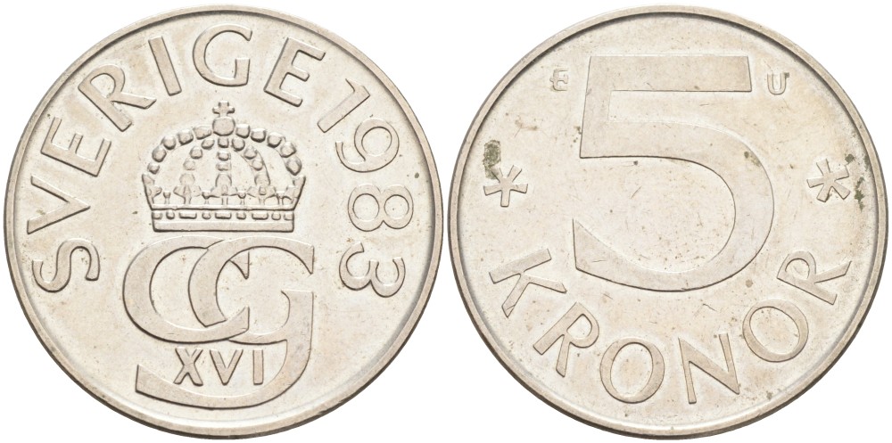 Швеция 5 крон 1983 U, Карл XVI Густав (1973- ) KM 853 медно-никель 4381-1035