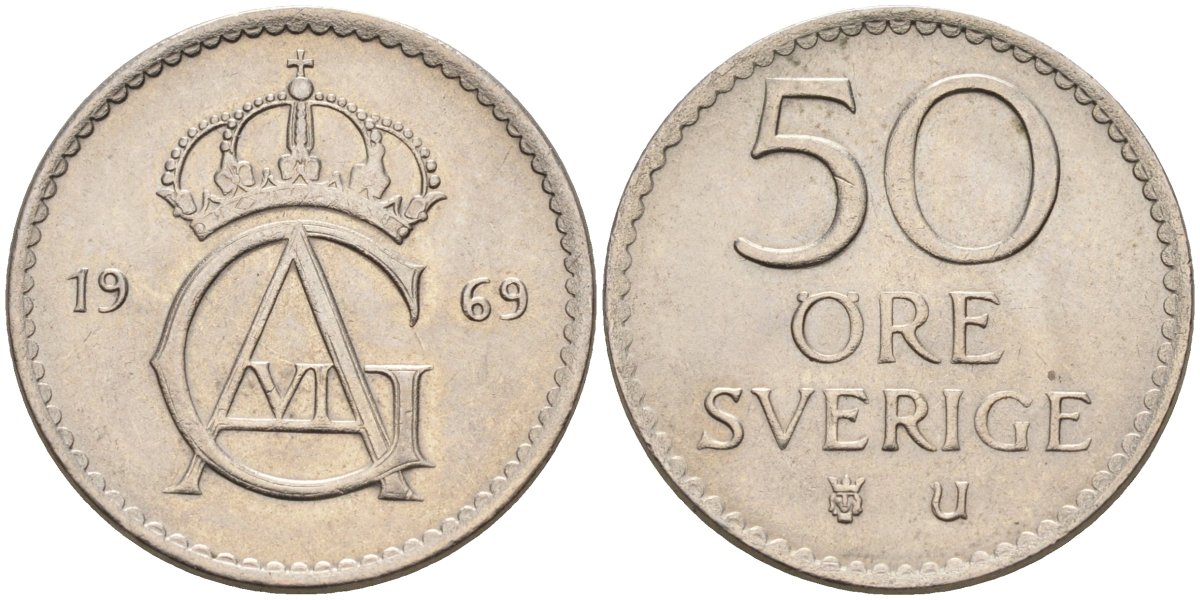 Швеция 50 эре 1969 Густав VI Адольф (1950-1973) KM 837 медно-никель UNC 4582-753
