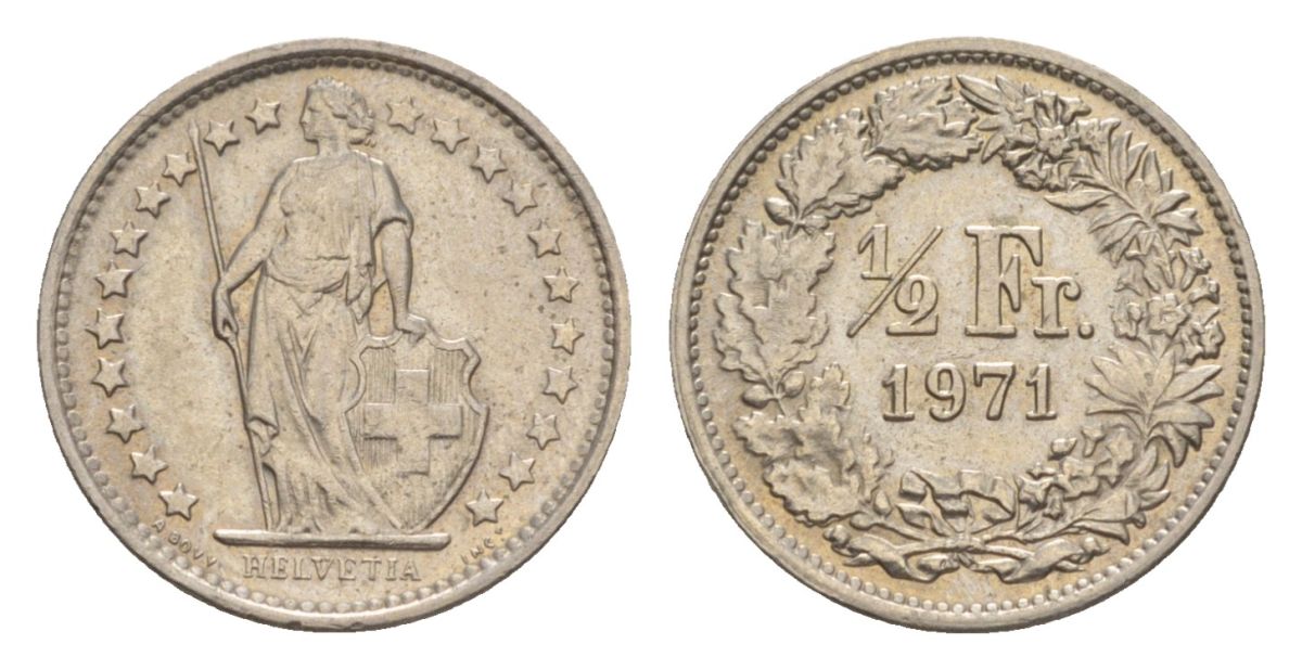 Швейцария 1/2 франка 1971 KM 23a медно-никель 4632-468