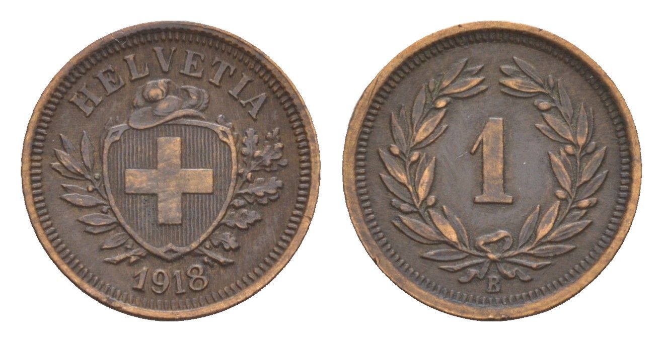 Швейцария 1 раппен 1918 B KM 3 бронза 4655-249