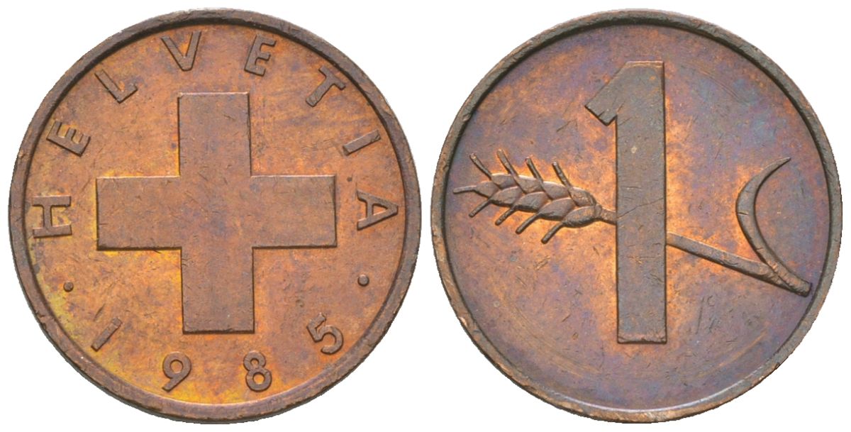 Швейцария 1 раппен 1985 KM 46 бронза aUNC 4115-1128