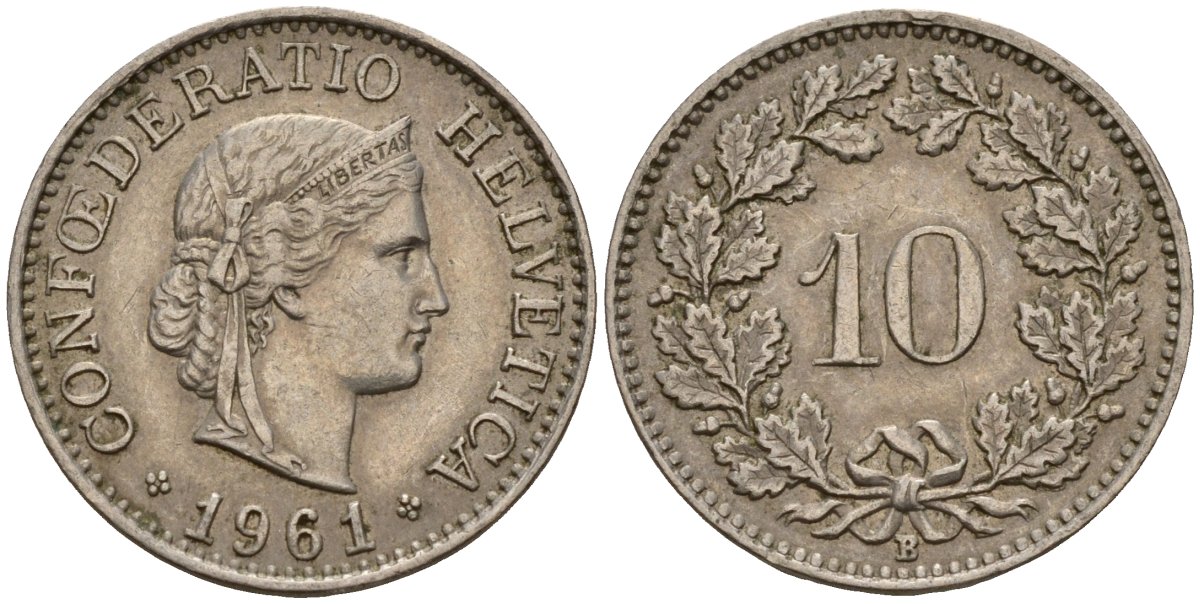 Швейцария 10 раппенов 1961 B KM 27 медно-никель 4189-357
