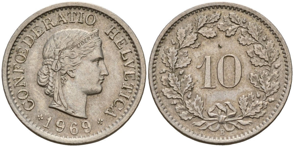 Швейцария 10 раппенов 1969 B KM 27 медно-никель 4189-415