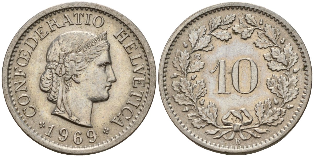 Швейцария 10 раппенов 1969 B KM 27 медно-никель 4189-417