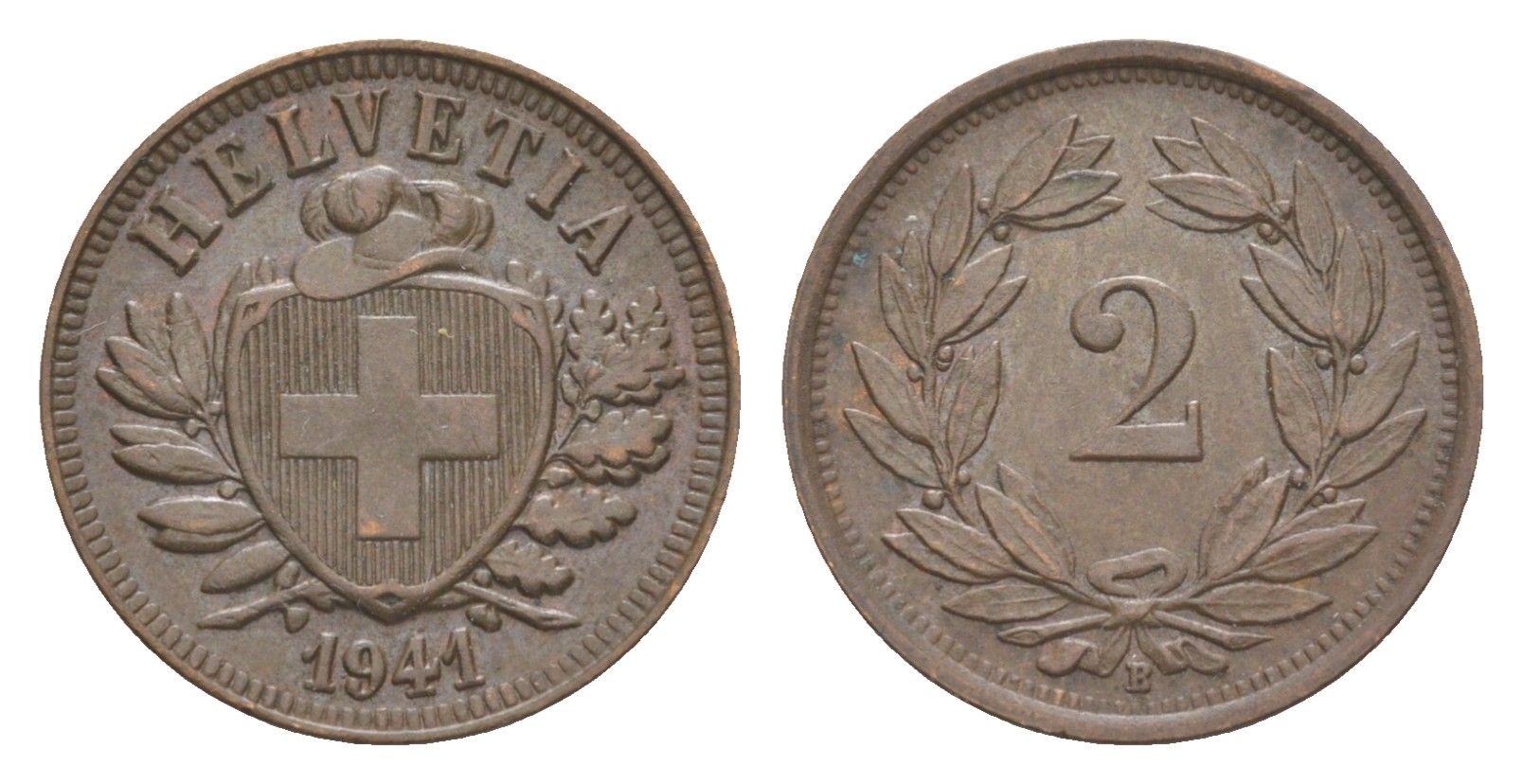 Швейцария 2 раппена 1941 KM 4.2a бронза 4630-622