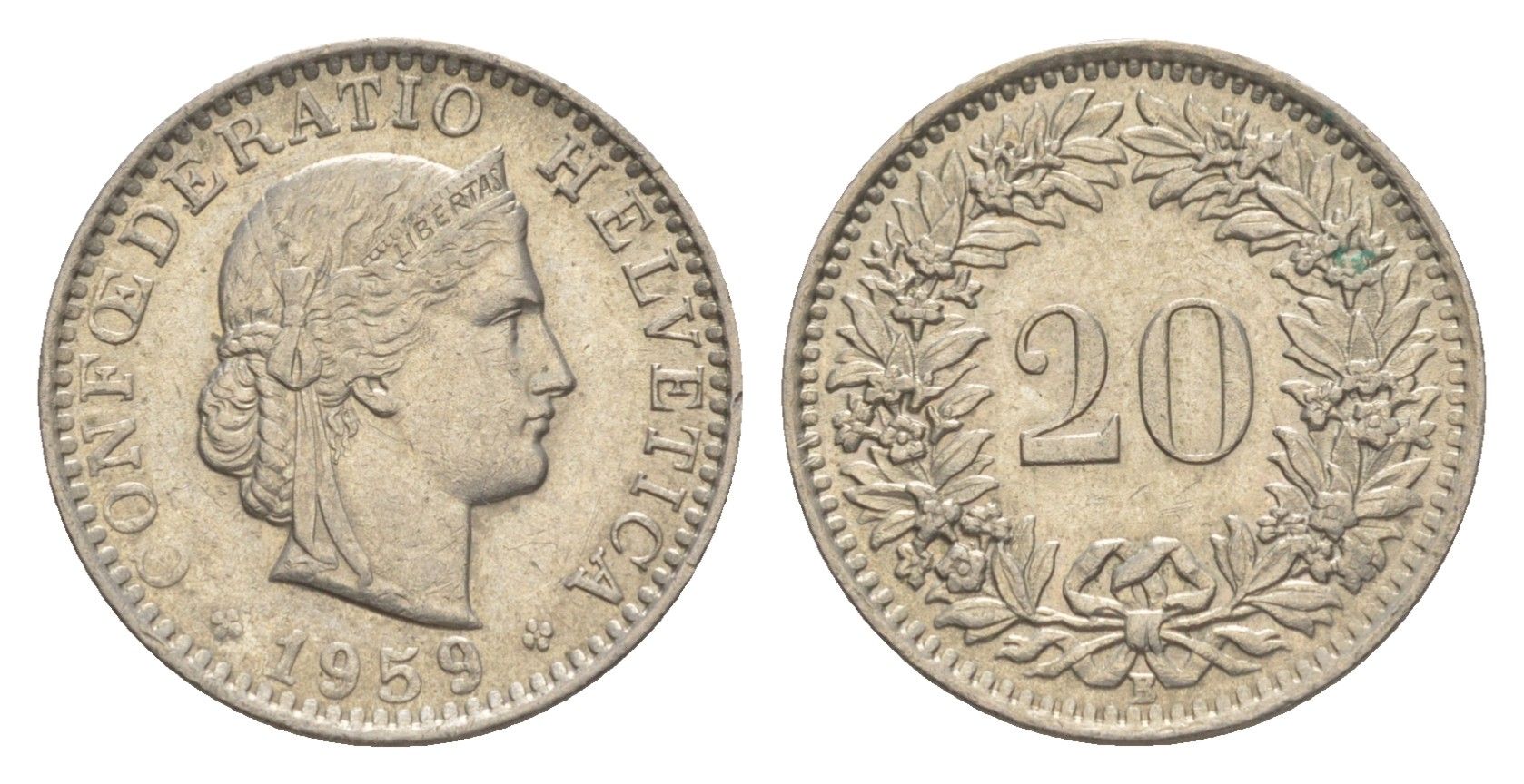 Швейцария 20 раппенов 1959 B KM 29a медно-никель 4625-1065