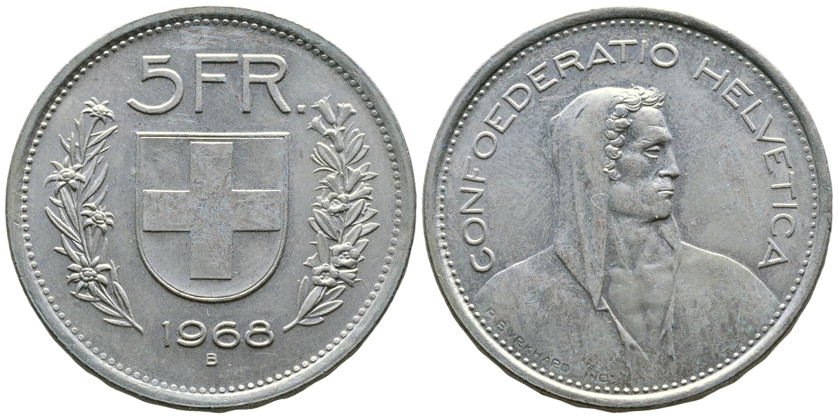 ШВЕЙЦАРИЯ 5 ФРАНКОВ 1968 В KM 40а.1 медно-никель 4110-1223
