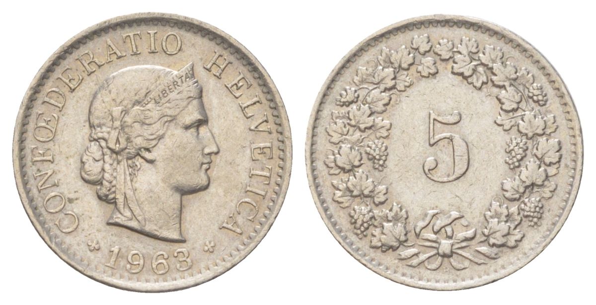 Швейцария 5 раппенов 1963 B KM 26 медно-никель 4625-443