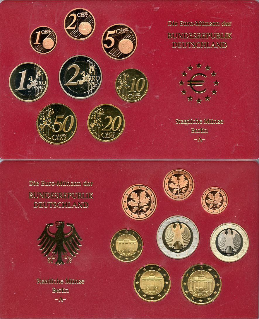 ФРГ государственный евронабор из 8 монет 2004 A KM PS 165 PROOF 8-2-04-01