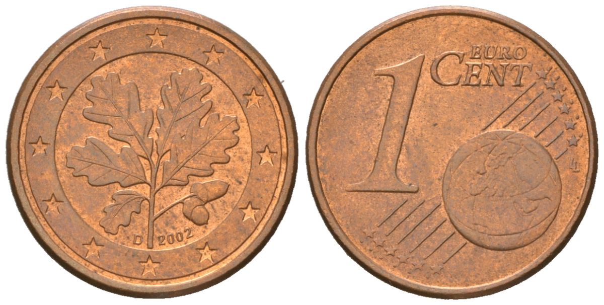Германия 1 евроцент 2002 D KM 207 сталь плакированная медью 4532-1225
