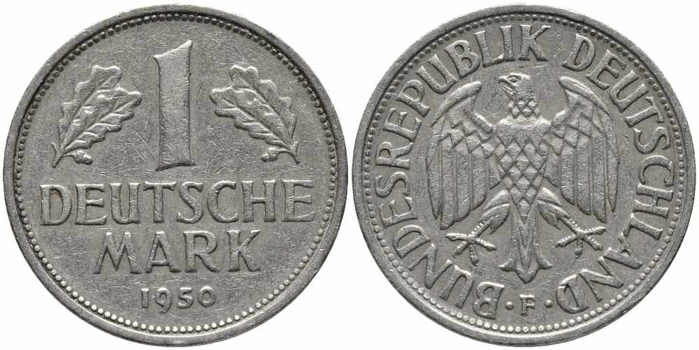 ФРГ 1 марка 1950 F, KM 110, J. 385 медно-никель 113-153