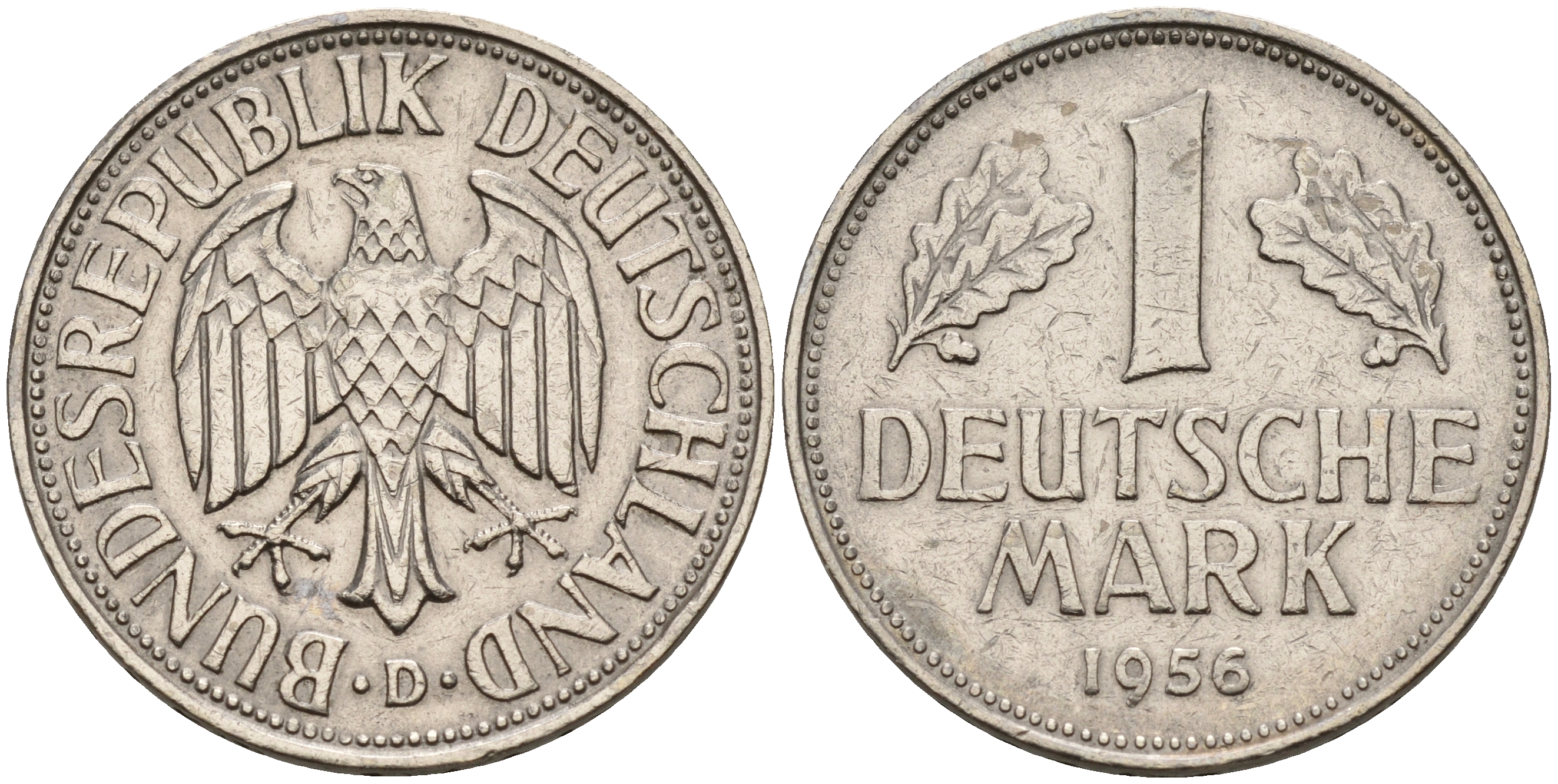 ФРГ 1 марка 1956 D KM 110, J.385 медно-никель 4153-525