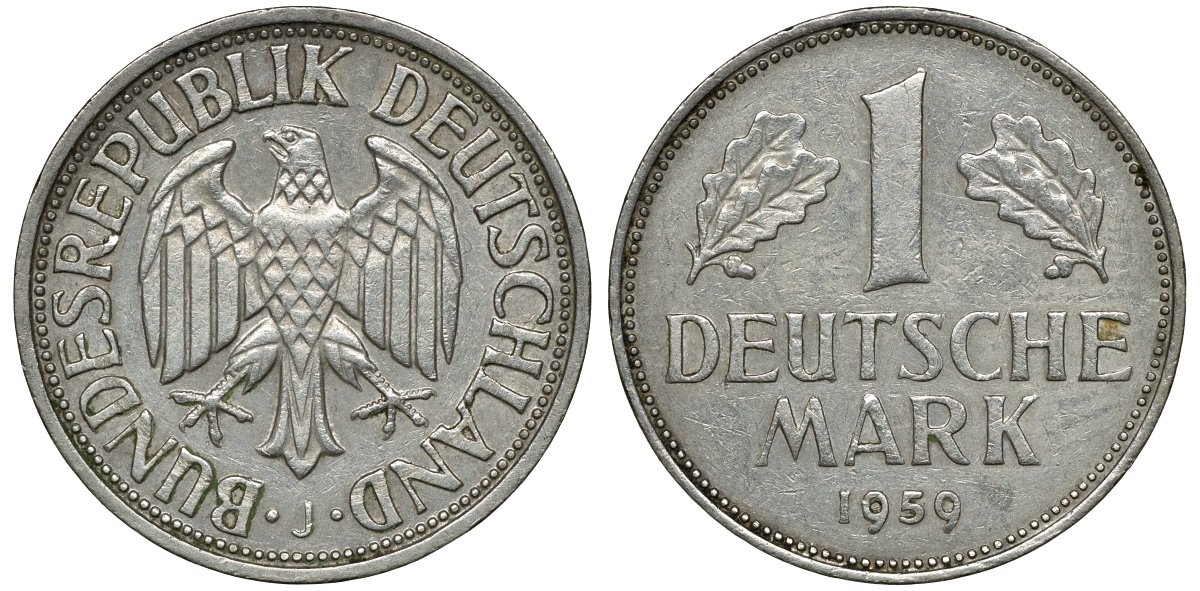 ФРГ 1 МАРКА 1959 J J 385, KM 110 медно-никель 72-655