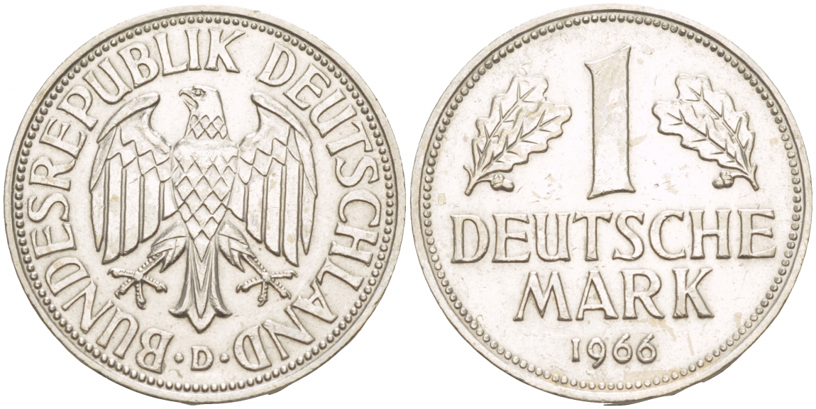 ФРГ 1 МАРКА 1966 D KM 110, J. 385 медно-никель 4544-243