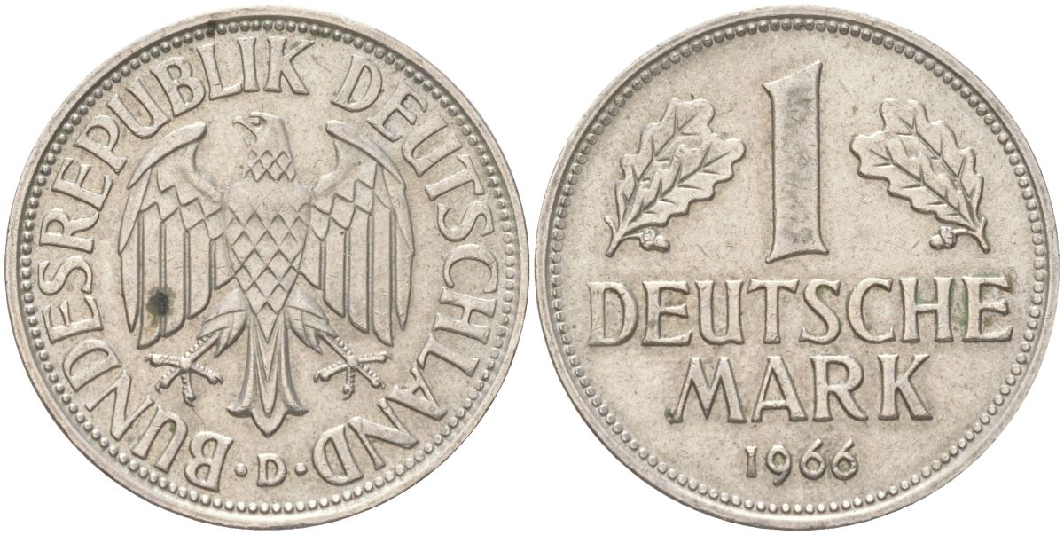 ФРГ 1 марка 1966 D KM 110 медно-никель 4143-133