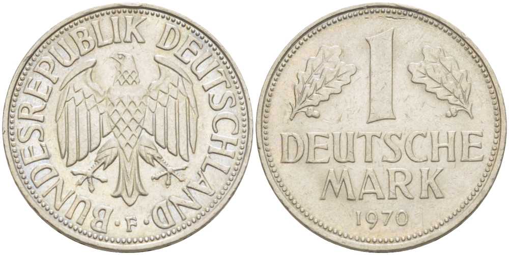 ФРГ 1 МАРКА 1970 F KM 110, J. 385 медно-никель 119-1145