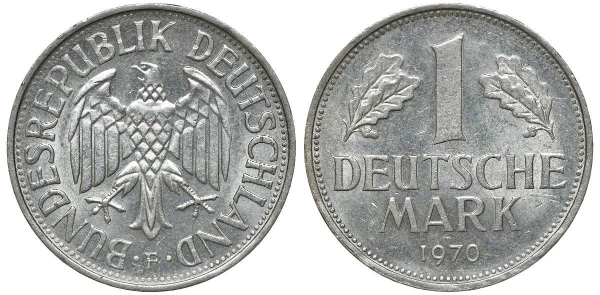 ФРГ 1 МАРКА 1970 F, KM 110, J. 385 медно-никель aUNC 72-815