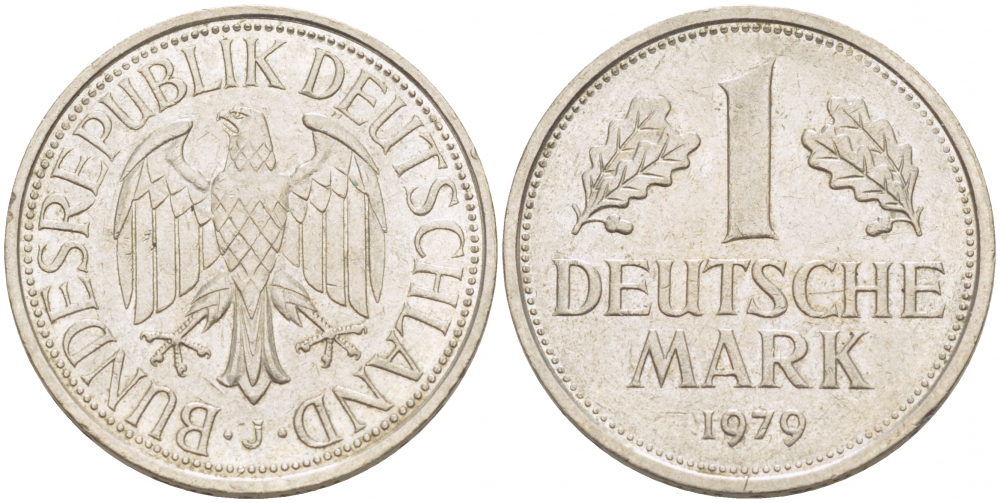 ФРГ 1 МАРКА 1979 J KM 110 медно-никель 3718-1213