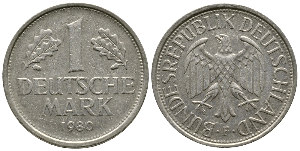 ФРГ 1 МАРКА 1980 F KM 110 медно-никель 47-726