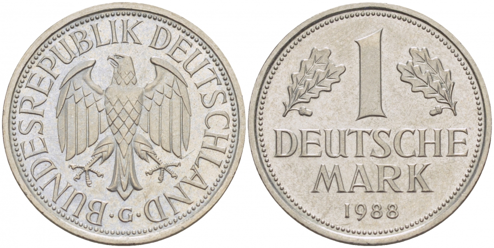 ФРГ 1 МАРКА 1988 G KM 110 J 385 медно-никель 87-1553