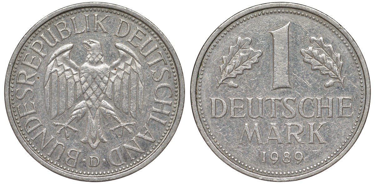 ФРГ 1 марка 1989 D J 385, KM 110 медно-никель 51-3012