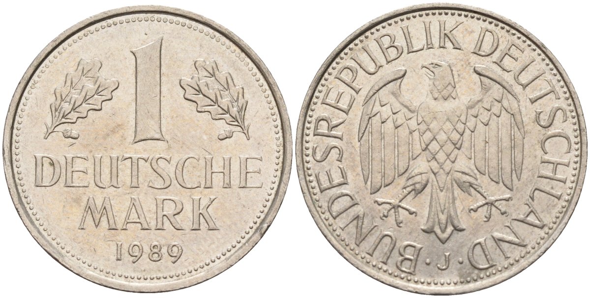 ФРГ 1 марка 1989 J KM 110, J. 385 медно-никель 4182-724