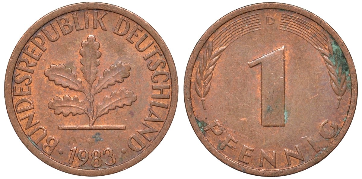 ФРГ 1 пфенниг 1988 D KM 105, J.380 сталь плакированная медью 4174-449