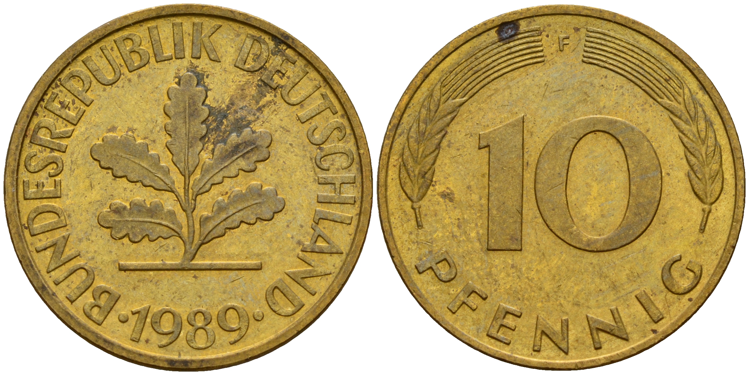ФРГ 10 пфеннигов 1987 F J. 383, KM 108 сталь плакированная латунью 4603-544
