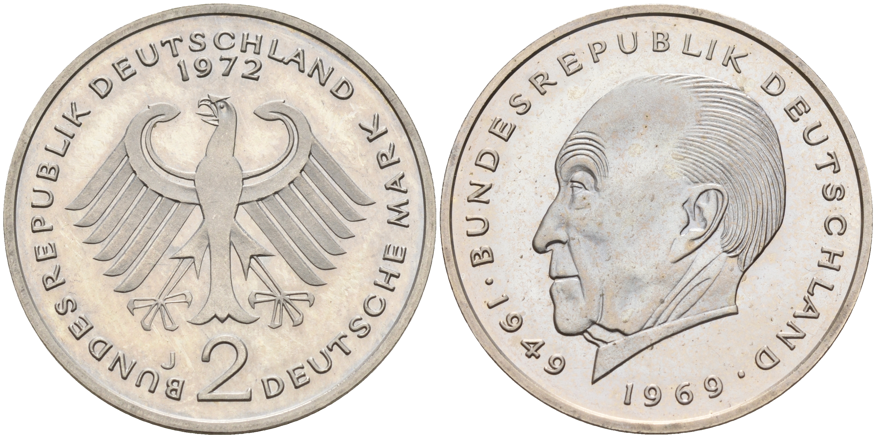 ФРГ 2 марки 1972 J, Конрад Аденауэр J 406, KM 124 медно-никель плакированный никелем PROOF 4155-154
