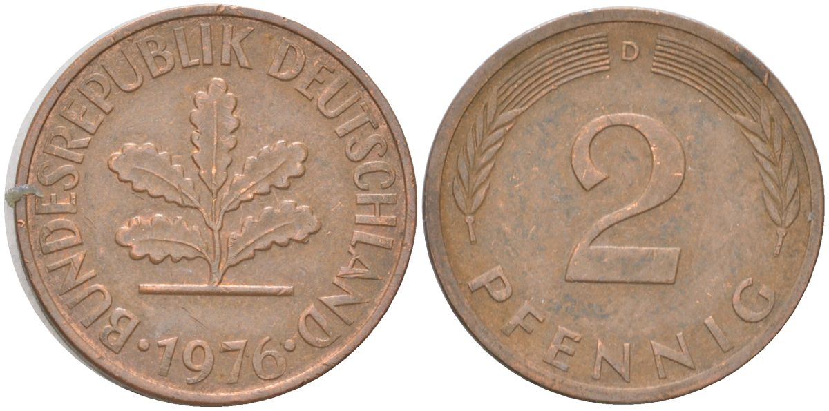ФРГ 2 пфеннига 1976 D KM 106a сталь плакированная медью 4613-1221