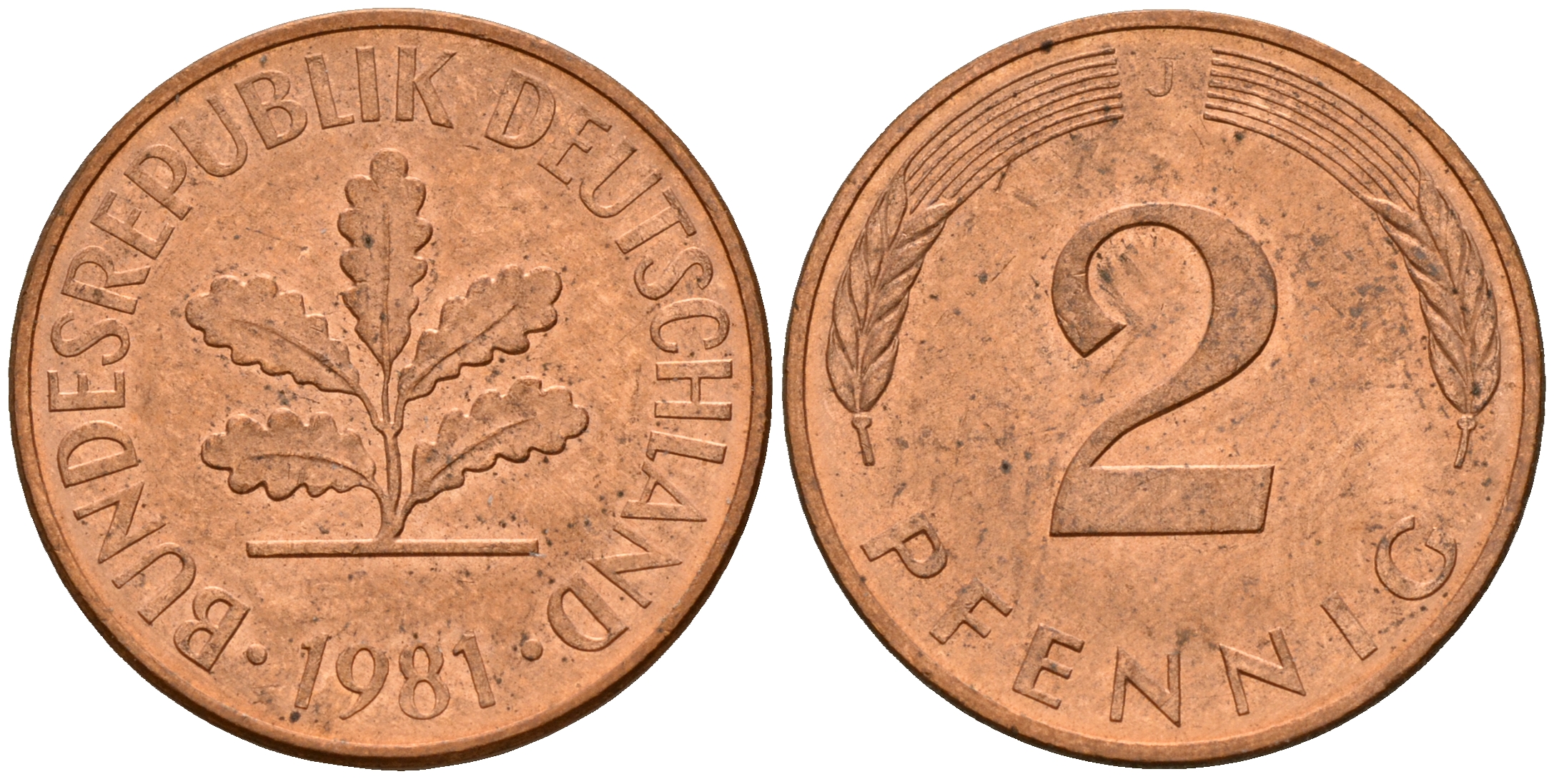 ФРГ 2 пфеннига 1981 J J.381a, KM 106a сталь плакированная медью 4598-859