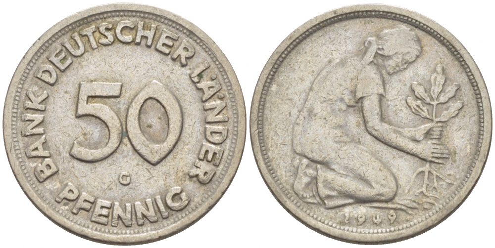 ФРГ 50 пфеннигов 1949 G KM 104, J. 379 медно-никель 112-942