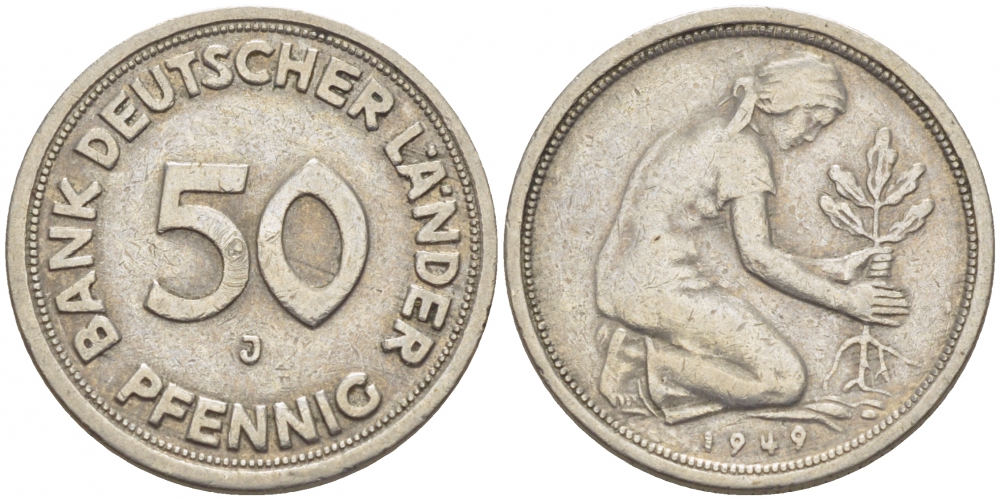 ФРГ 50 ПФЕННИГОВ 1949 J KM 104, J. 379 медно-никель 112-949