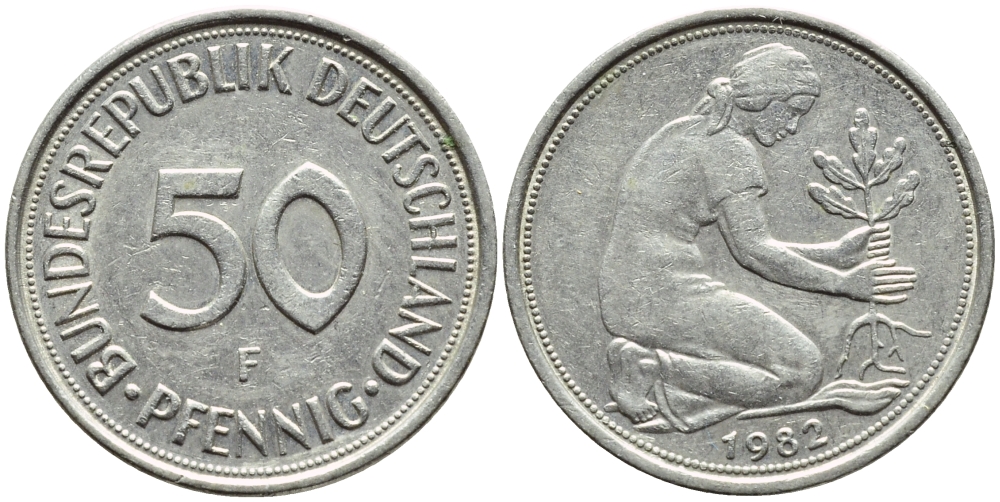 ФРГ 50 ПФЕННИГОВ 1982 F КМ 109.2 J.384a медно-никель 4392-1053