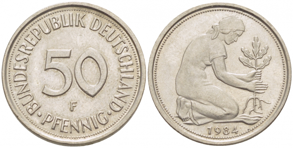 ФРГ 50 пфеннигов 1984 F KM 109.2 медно-никель 26-426