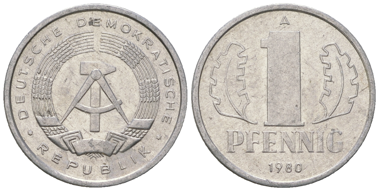 ГДР 1 ПФЕННИГ 1980 А алюминий 4623-359