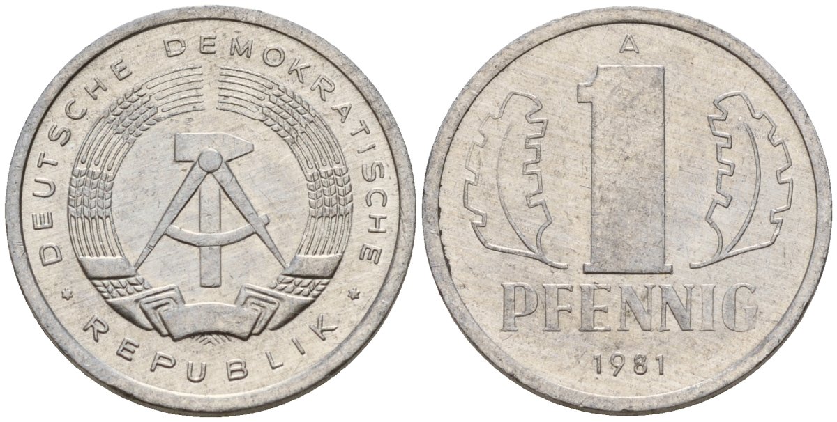 ГДР 1 пфенниг 1981 A KM 8.2 алюминий 188-146