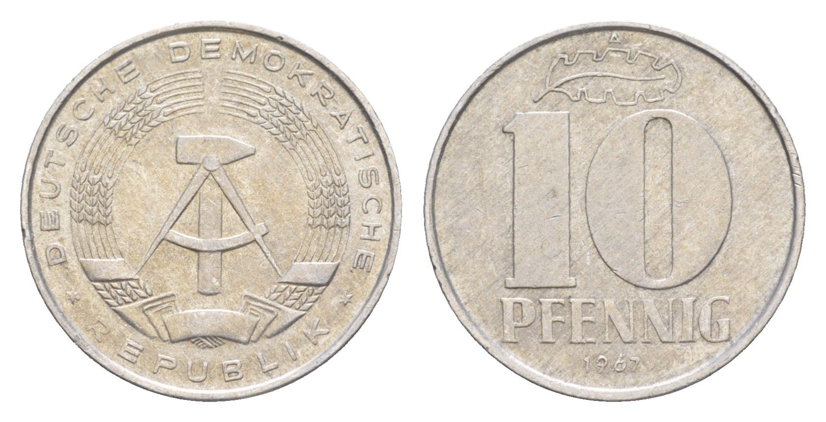 ГДР 10 пфеннигов 1967 A KM 10 алюминий 4647-814