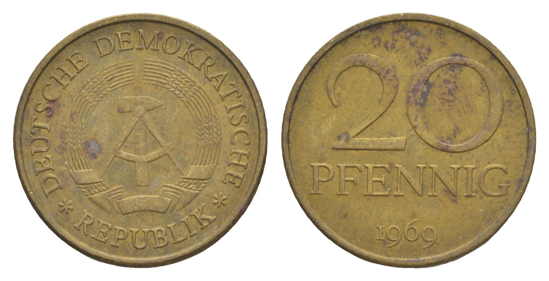 ГДР 20 пфеннигов 1969 A, первый год KM 11 латунь 4538-543