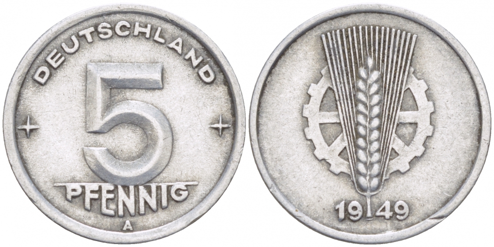 ГДР 5 ПФЕННИГОВ 1949 А KM 2 алюминий 3955-547
