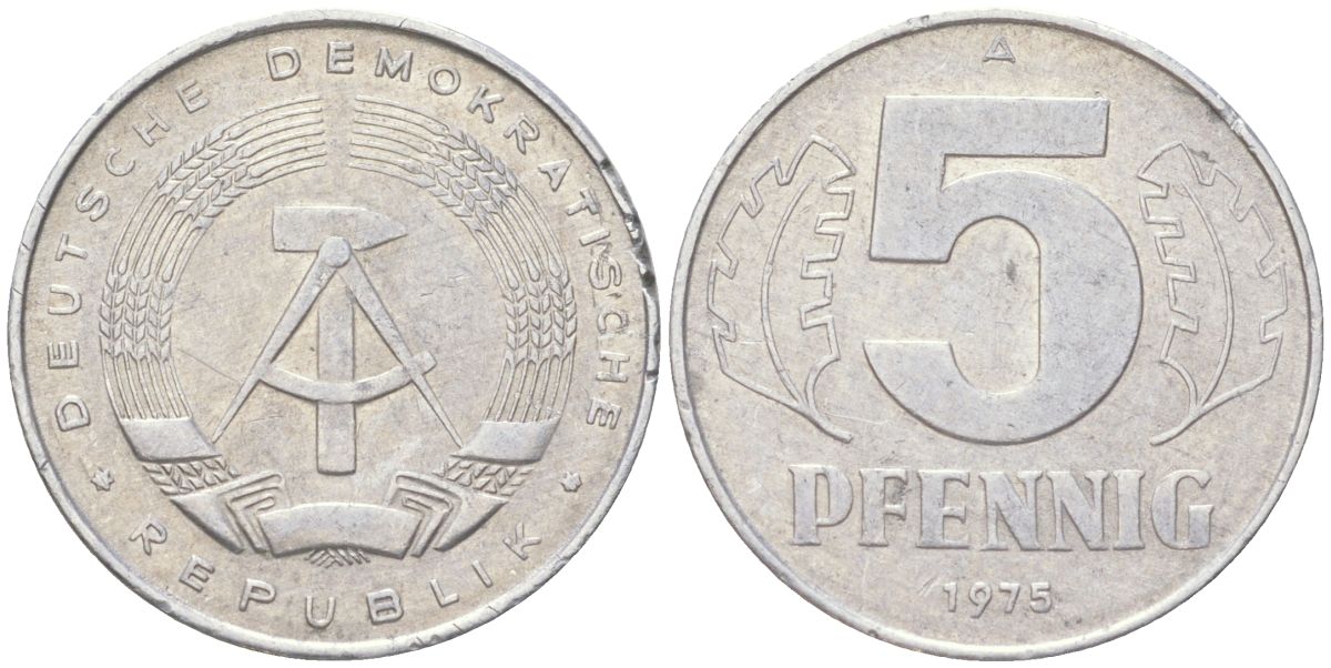 ГДР 5 пфеннигов 1975 A KM 9.1 алюминий 4613-946
