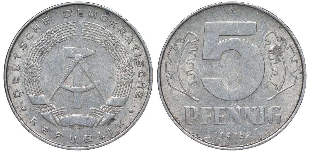 ГДР 5 ПФЕННИГОВ 1975 A KM 9.1 алюминий 62-325