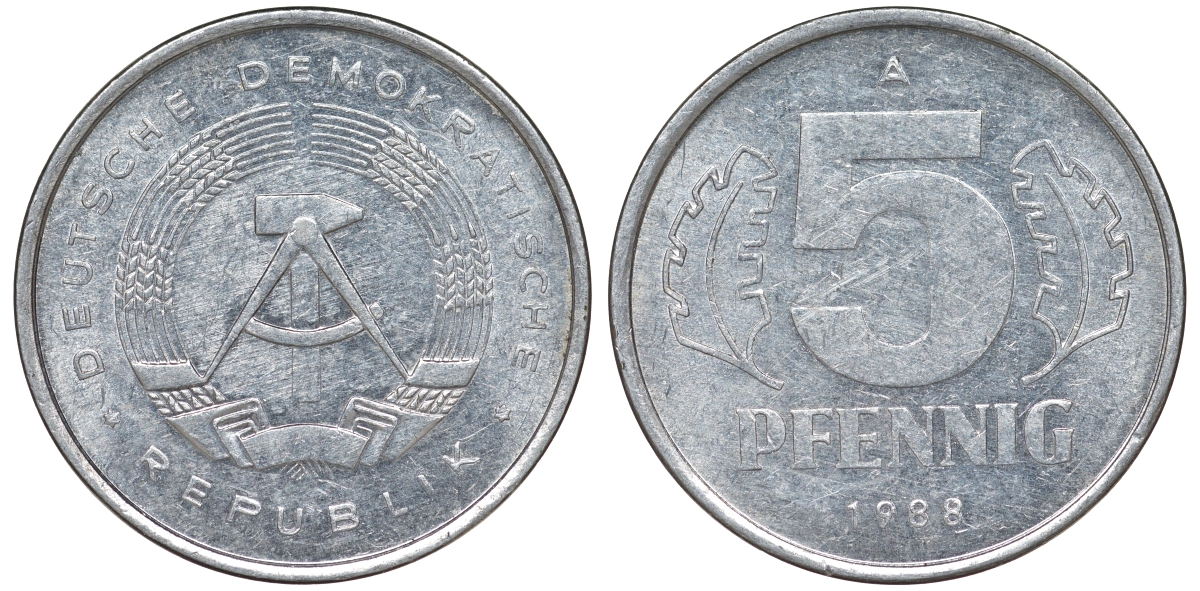 ГДР 5 ПФЕННИГОВ 1988 А алюминий 62-537